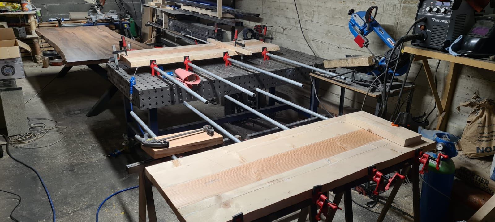 Petit assemblage en sapin et mélèze pour un meuble de salle de bain, l'occasion de me servir de mon "nouveau" lurem C260n pour la première fois depuis sa rénovation.