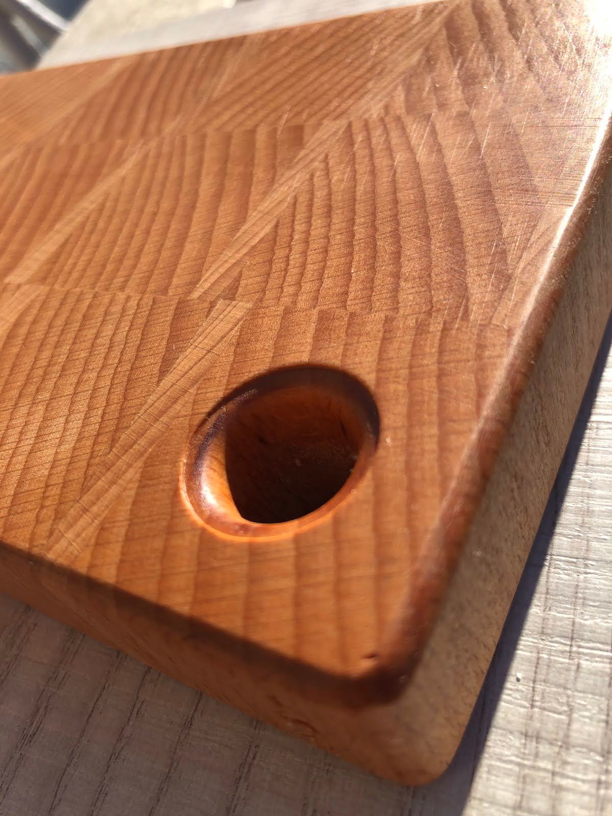 Ma toute première planche à découper en bois de bout avec une chute de hêtre qui provenait de l'installation d'une rampe d'escalier.