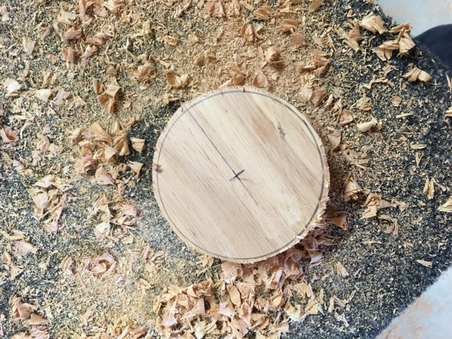 J'ai tiré quatre ronds d'un diamètre de 80 dans l'unique chute qu'il me restait de mes plans en lamellé.