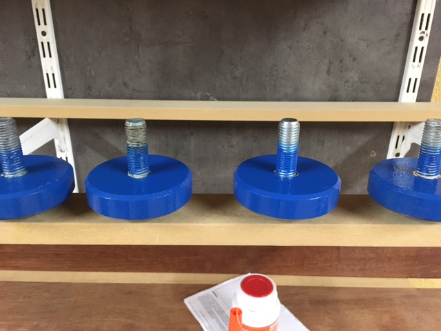 J'ai noyé des écrous à chaque pieds. J'y ai vissé mes pieds Et j'ai posé le tout pour finir la peinture.