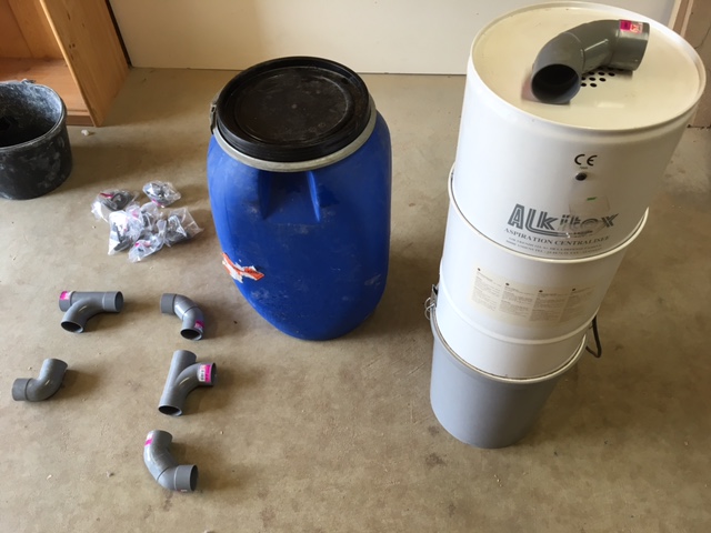 De mon coté je m'occupe de l'aspiration. J'en profite pour équiper tout l'atelier. J'ai acheté une aspiration centralisée de maison car je suis équipé que d'électroportatif. J'ai ajouté à cela un cyclone pour ne pas encrasser trop vite le filtre de l'aspirateur et voici le résultat qui est bien avancé: Maintenant ce que je souhaite c'est que la centrale s'allume à distance. De toute façon, avec la photo qui va suivre, je suis obligé d'avoir un interrupteur ou quelque chose du genre: Diomedea, ton système d'allumage avec ta télécommande pourrait aller sur ma centrale?