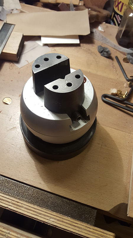 En fait c'est une boule-étau qui est posée sur un support en caoutchouc qui a un peu la forme d'un donut, ce qui permet d'orienter la boule dans tous les sens :