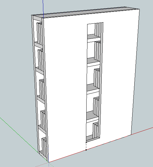 Ah Ben ça avance bien ! Par contre les étagères j'aurais mis le fil du bois dans l'autre sens ! Vu que c'est des lames de sapins collés à plat cela à tendance à casser ! Mais bon tu verra à l'usage !