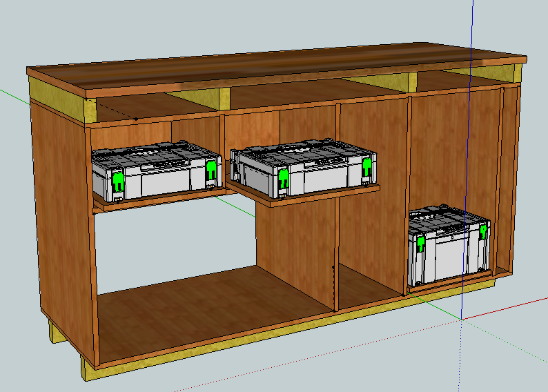 Super! Il commence à avoir une belle petite tête ton établi. Tes photos m'on convaincues sur le coup des "tiroirs" pour les boites Festool. Je crois que je ferais cela aussi pour le mien.