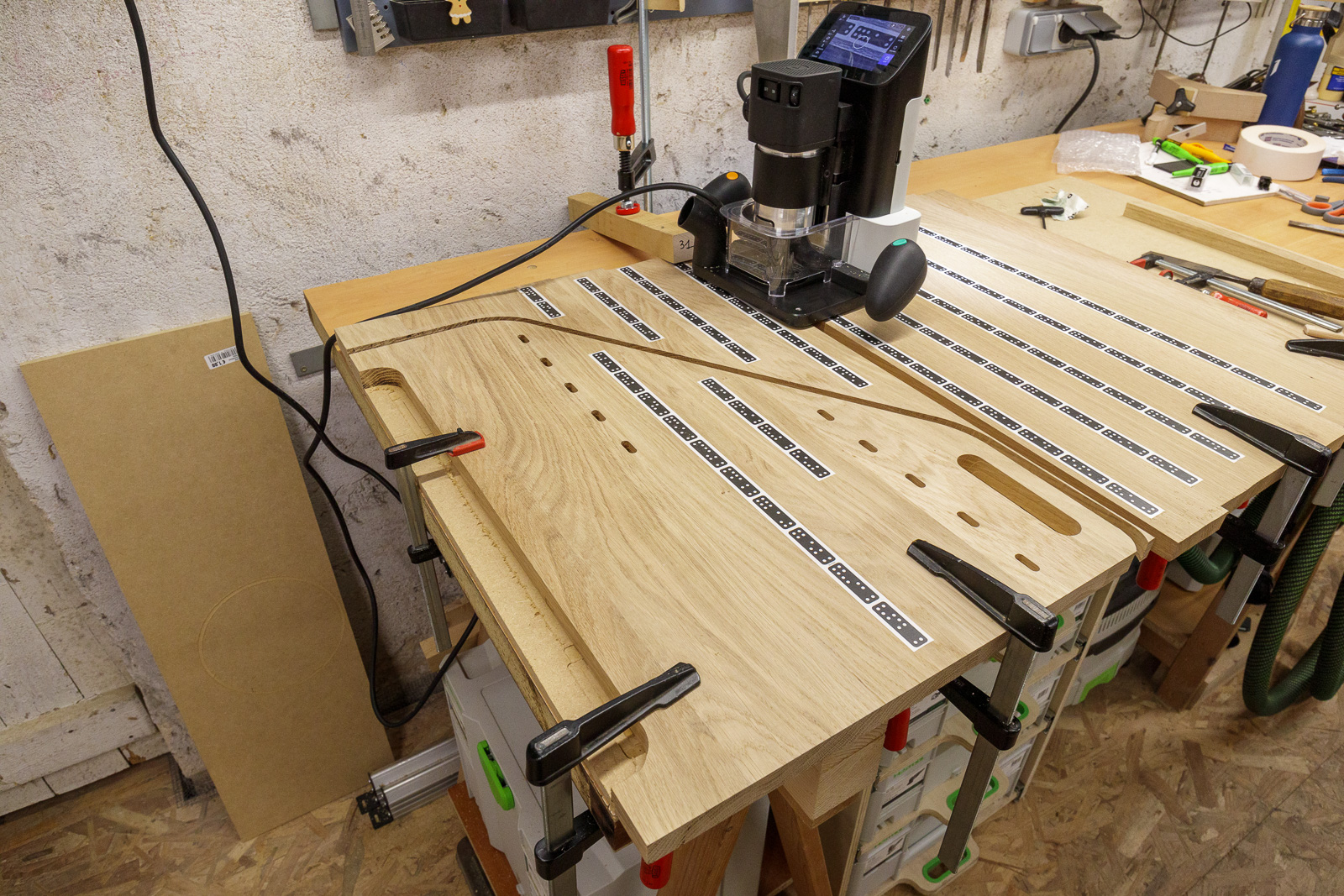 Tout d'abord, pour faire plaisir à Roland, la mise en place pour découper les côtés avec la Shaper Origin :