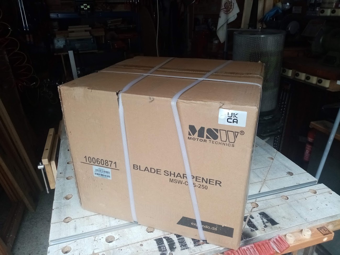 A l'arrivée, une belle machine conforme aux photos du vendeur, qualité des finitions au top (fonderie/peinture/etc…) et sans aucun jeu dans les glissières en queues d'aronde. Pas de faux rond non plus sur le disque diamant, elle fait à peine plus de bruit qu'un ventilateur à vide ! Elle respire la qualité, à mon avis comparable aux premières générations de Holzmann selon ce que j'ai lu ici et là sur ce forum. J'ai affuté 3 lames dans la foulée, facile et efficace ! :P