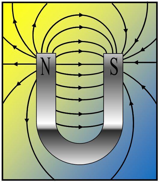Les semences vont obligatoirement s'orienter sur la pane du marteau (ou demie-panne, selon l'hypothèse de départ à laquelle j'ai répondu) parallèlement aux lignes de champ magnétique (ci-dessous, matérialisé en rouge) => sur un aimant "en U", aussi bien coté N que S de la même façon (mais, bien sûr "en miroir") ... dans tous les cas la semence n'est donc pas dans l'axe de frappe du marteau => ça ne peut pas marcher !