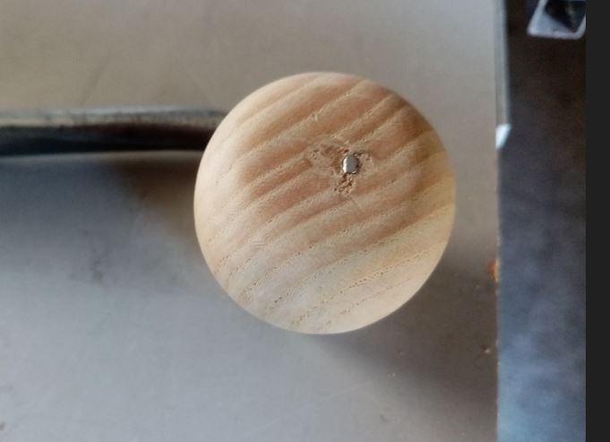 donc soit ce sera une poignée très courte : longueur de 32 mm pour un diamètre au plus gros de 36 mm, et effectuer un rabatage après avoir diminuer un peu le bout de métal