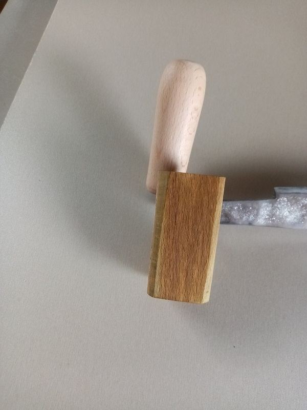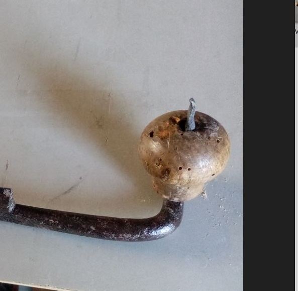 les poignées sur les 2 grandes planes sont montées ..ça était plus galère que je ne le pensais, j'ai pu utilisé la bouterolle de Red71 mais seulement pour la moitié du travail, car le creux est un peu trop grand , j'ai donc terminé comme sur une précédente plane à mater avec la panne du marteau , plus un chasse goupille à la fin (pourtant sur l'une la terminaison à mater est de 4 mm presque carrée, et l'autre de 3 mm , plus fin que prévu car les extrémités étaient fortement rouillées, donc j'ai coupé un peu )