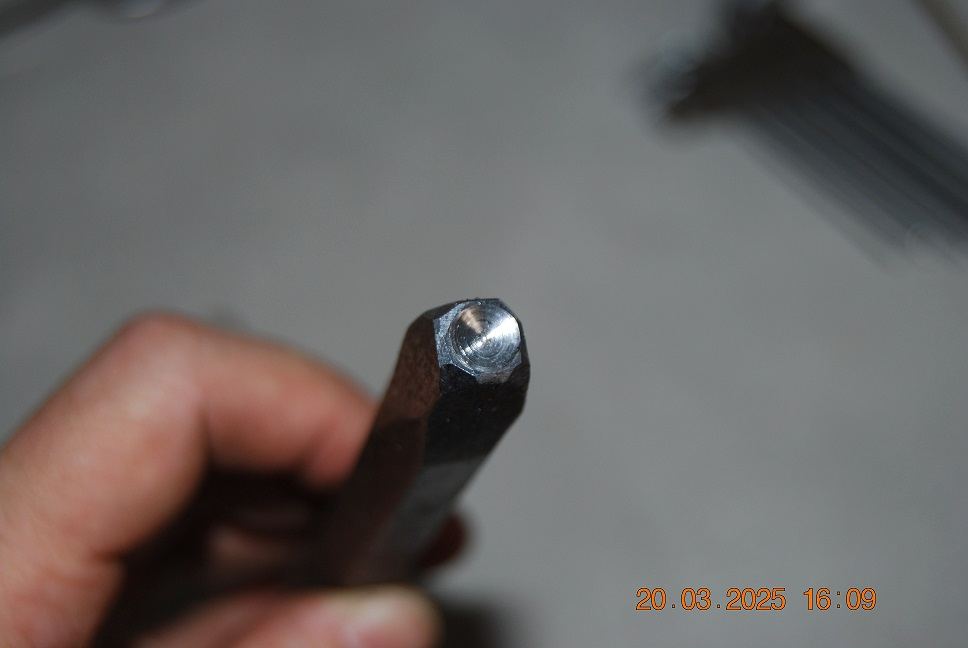 Le burin est hexagonale, la section est de 14mm entre deux faces et de 15,5mm en cotés opposés