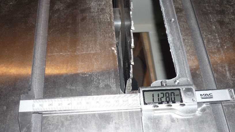 Puis j'ai mesuré l'écard ,avec l'aide de mon pied a coulisse, entre une de mes glissières et la dent marquée . D'abord la dent a été tournée (a la main, et scie débranché
