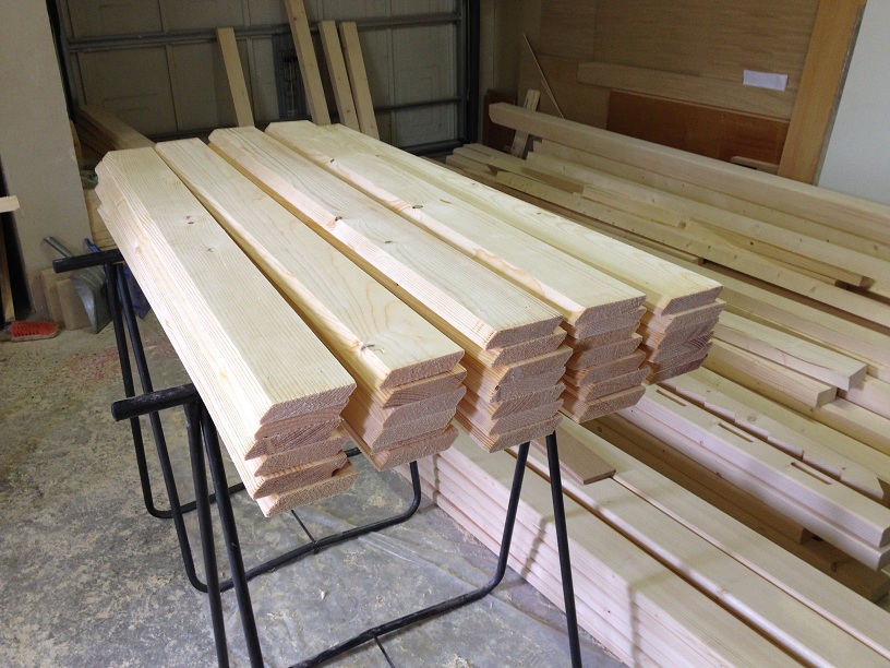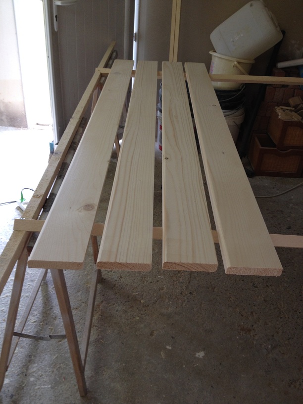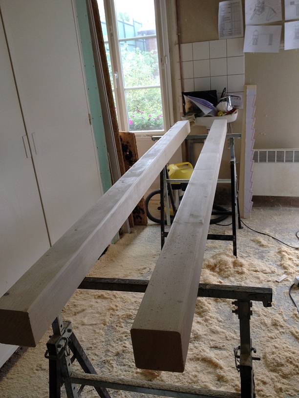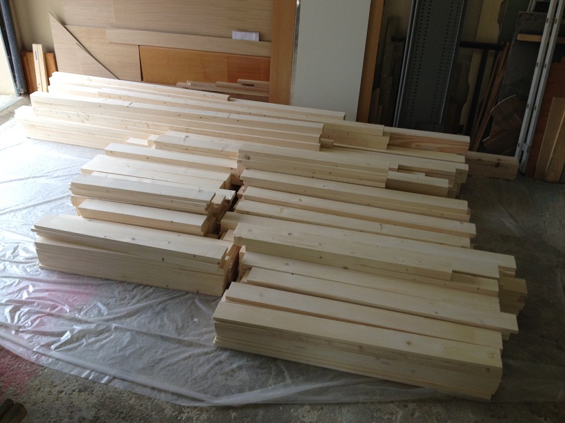 Ça y est le bois est livré ! Sapin du Nord. Mon menuisier a bien bossé. Les coupes sont propres, les bois déjà poncés.