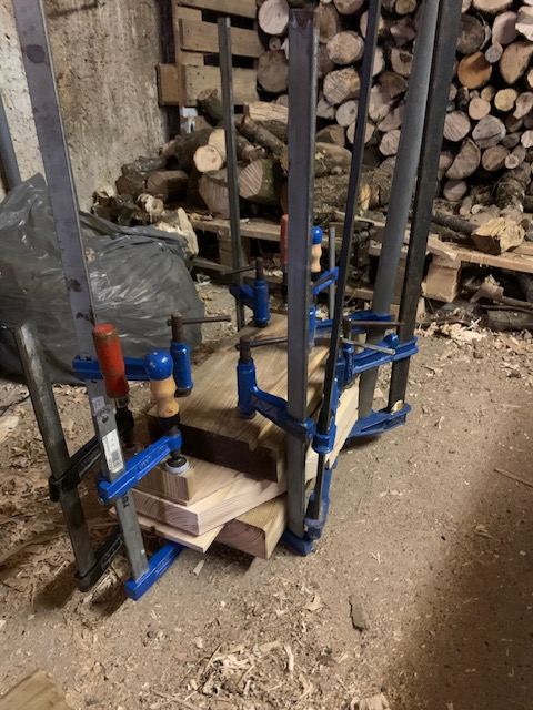 J'ai décidé de refaire le mors de la presse, un sandwich chêne/pin blanc/chêne. Le voici à la colle: