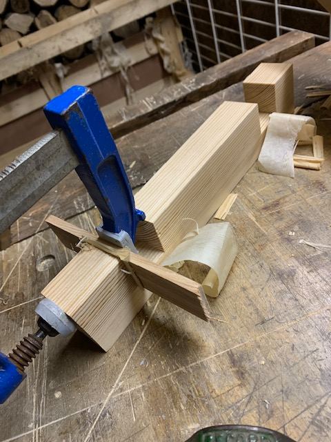 J'ai aussi essayé de trouver une solution pour éviter les mêmes mésaventures que lors de mon premier essai. J'ai taillé des cales pour maintenir les coulisseaux parallèles: