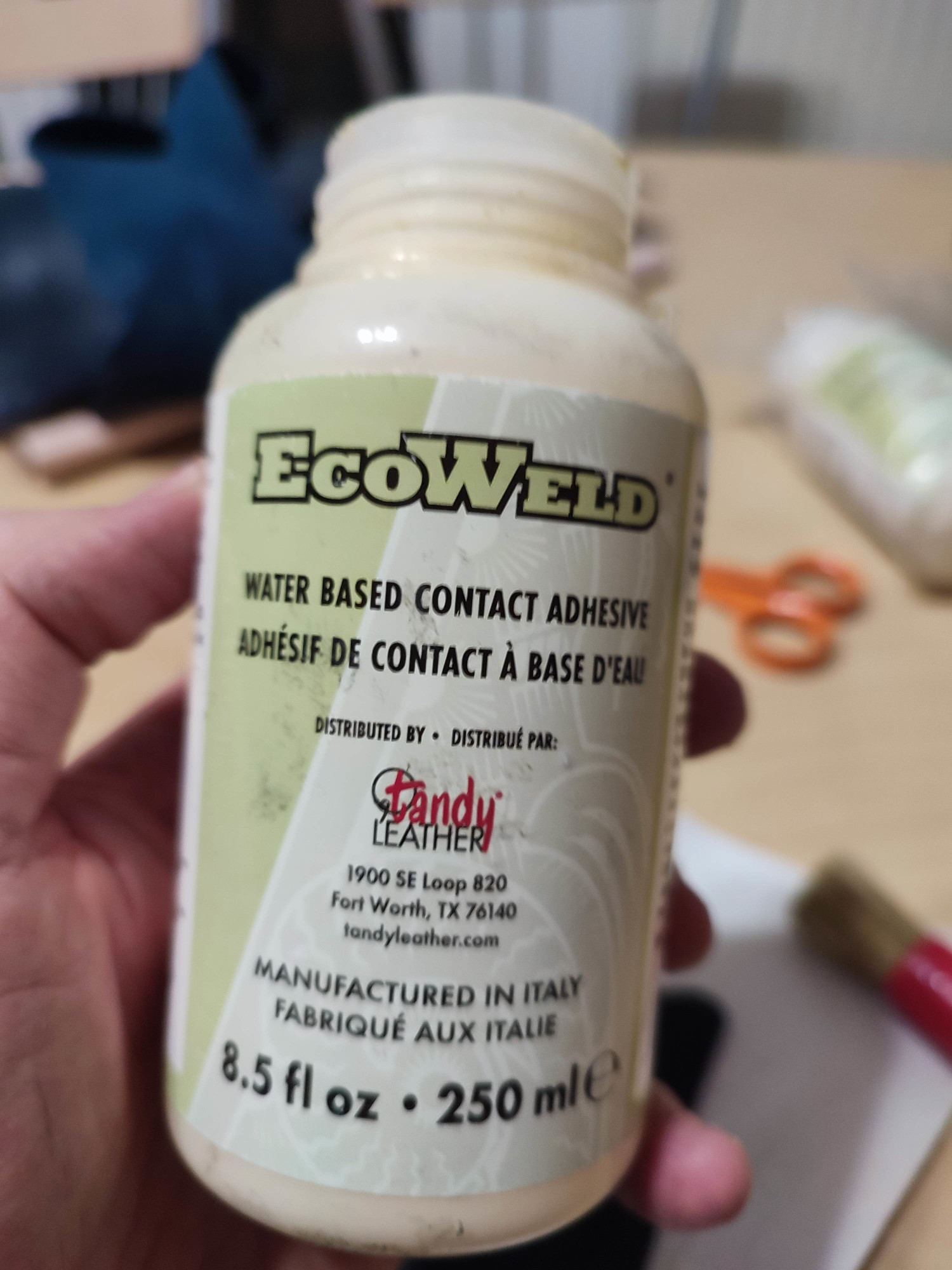 J'ai utilisé cette colle, que j'avais déjà utilisée cuir sur cuir, mais pas encore pour cuir sur bois: