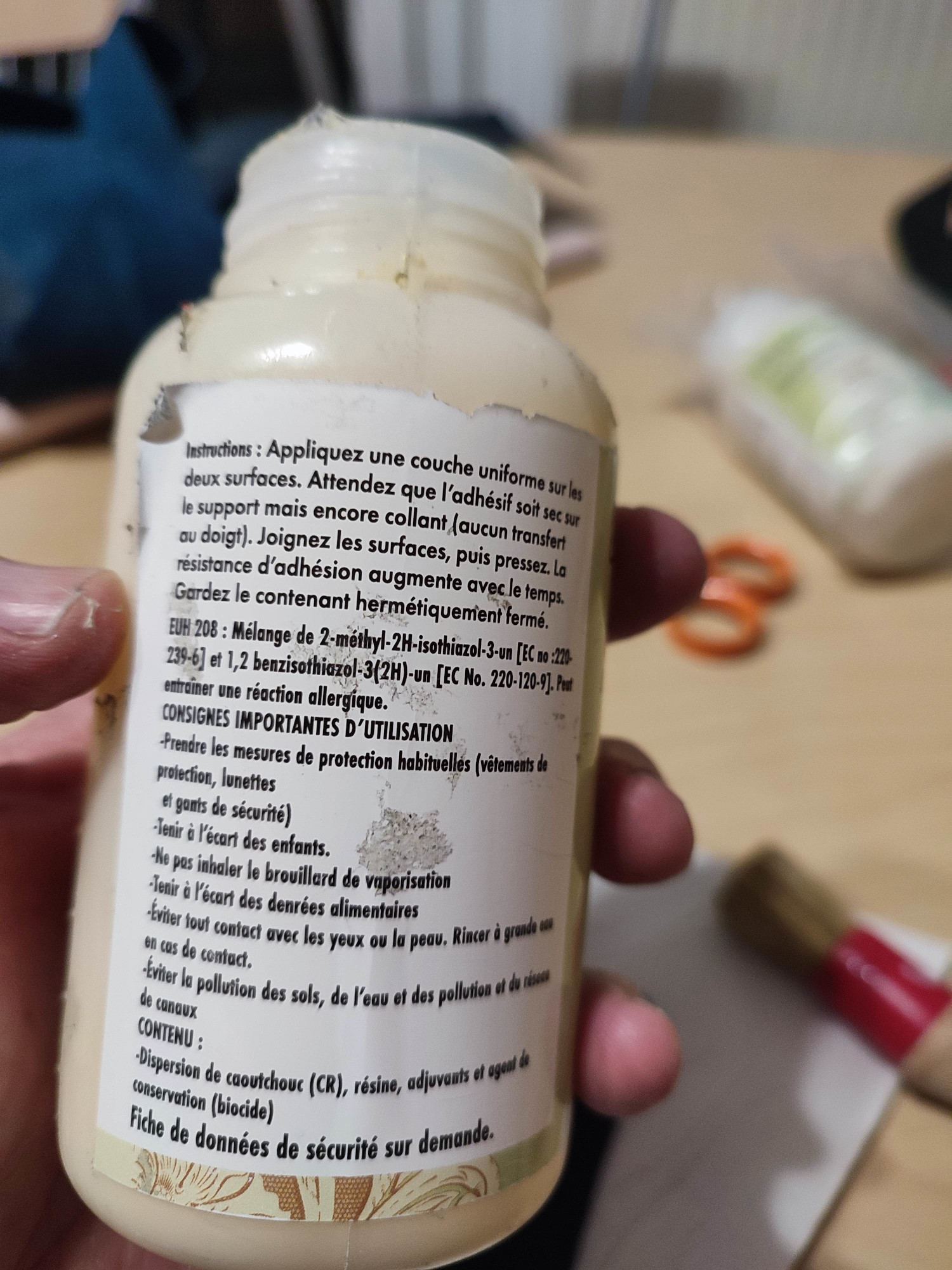 J'ai de la colle spécial cuir, c'est de la néoprène.