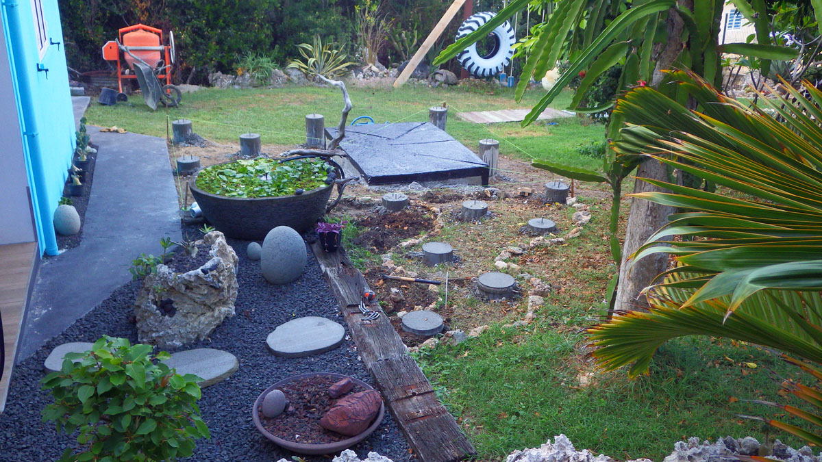 N'oublie pas d'installer une bâche plastique qui laisse passer l'eau mais qui empêchera au mauvaise herbe de pousser. Bon courage et bonne année