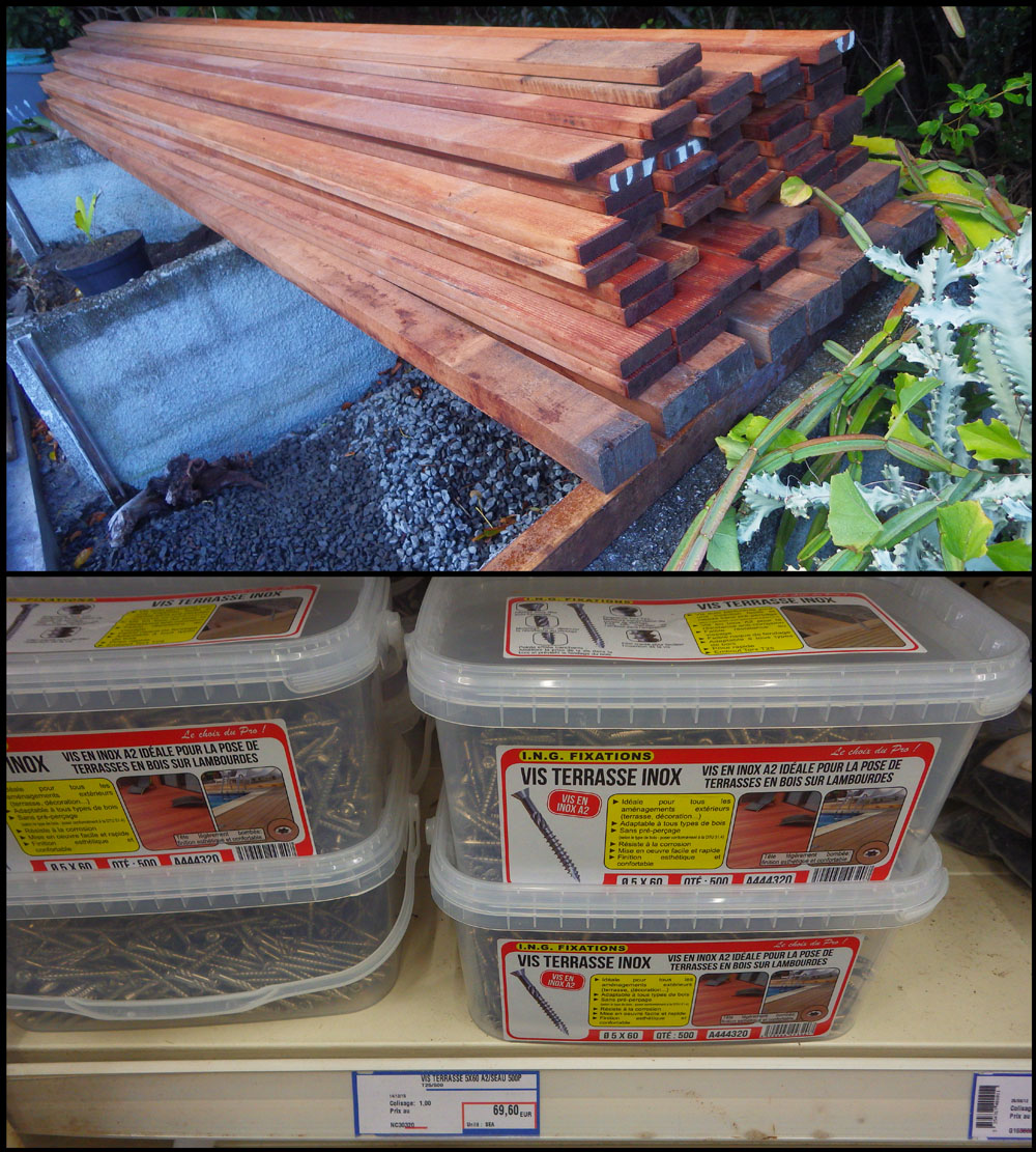 Je vais pas doubler (structure puis lambourdes) les bois, j'ai les moyens techniques de faire des beaux tenons mortaise ou de placer des écaires Inox :