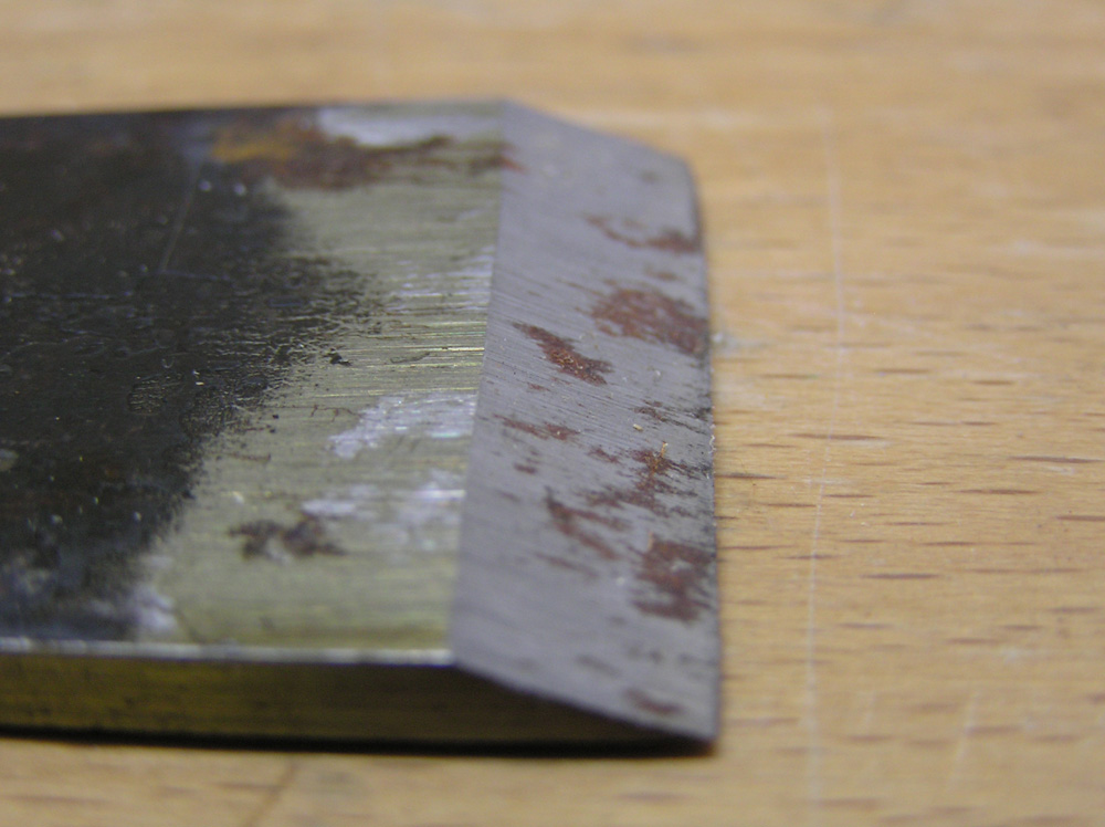 Si je peux me permettre Olink, tu devrais pas casser les coins sur tes ciseaux. C'est une méthode d'affûtage qui ne s'applique qu'aux fers de rabot. T'as besoin de tes coins perpendiculaires pour travailler une mortaise ou des queues d'aronde.