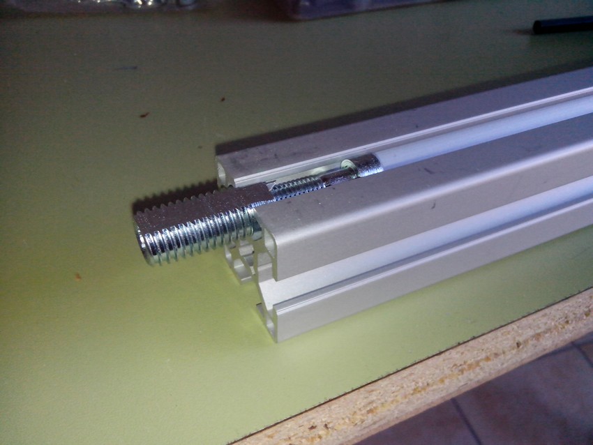 Je ne sais pas encore si avec les poignées j'utiliserais des tiges filetées avec les tasseaux lourds ou si je vais adapter des vis en modifiant la tête afin qu'elles coulissent dans le rail.