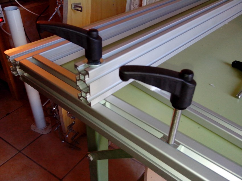 Effectivement, j'ai longtemps hésité. J'ai choisi cette option pour faire glisser les patins dans les 2 rails intérieurs et j'effectuerai surement le serrage dans les rails extérieurs. Je vais de toutes les façons faire plusieurs tests avant l'assemblage définitif.