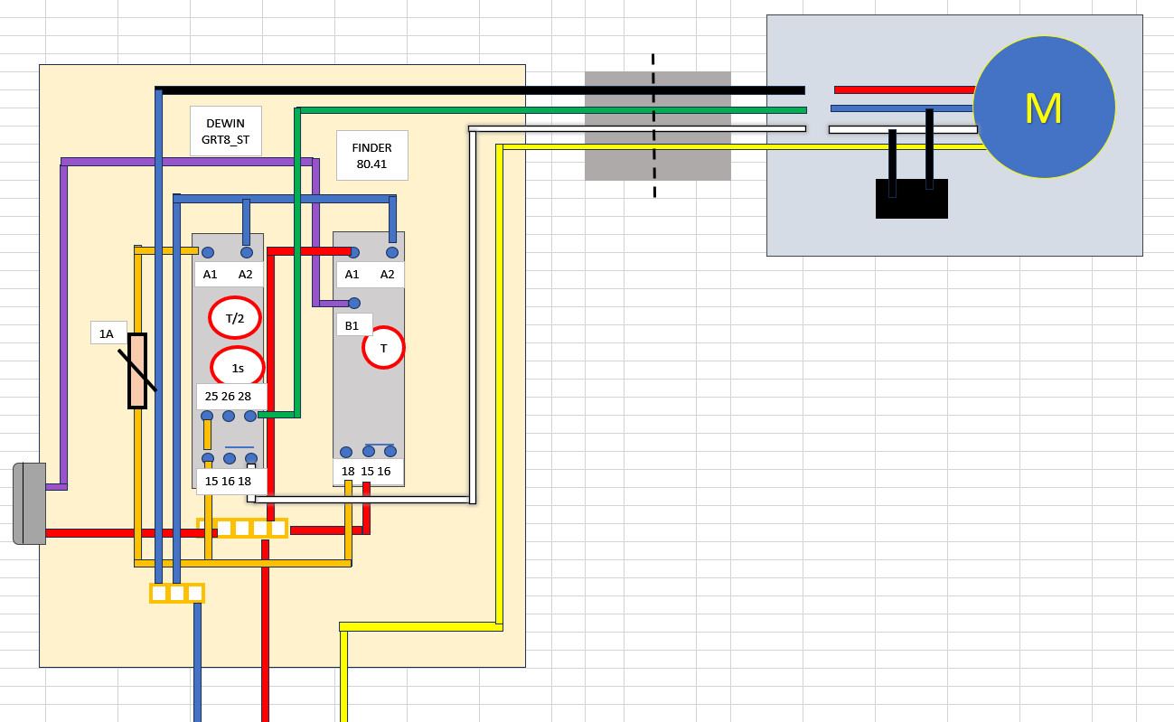 Ajout d'un relais tempo de type STAR/DELTA pour inverser le sens de rotation du moteur au bout de la moitié du temps.