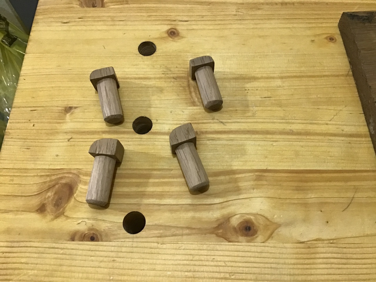 Les greppes ou taquets de section ronde c'est la facilité parce qu'on perce dans l'établi à la mèche au lieu de tailler des mortaises carrées mais ce n'est pas l'idéal à mon avis pour maintenir une pièce et aussi il faut l'enlever pour travailler sur l'établi alors qu'une section carrée peut rester en place et être juste enfoncée dans le plateau, il suffit de taper en dessous pour la sortir.