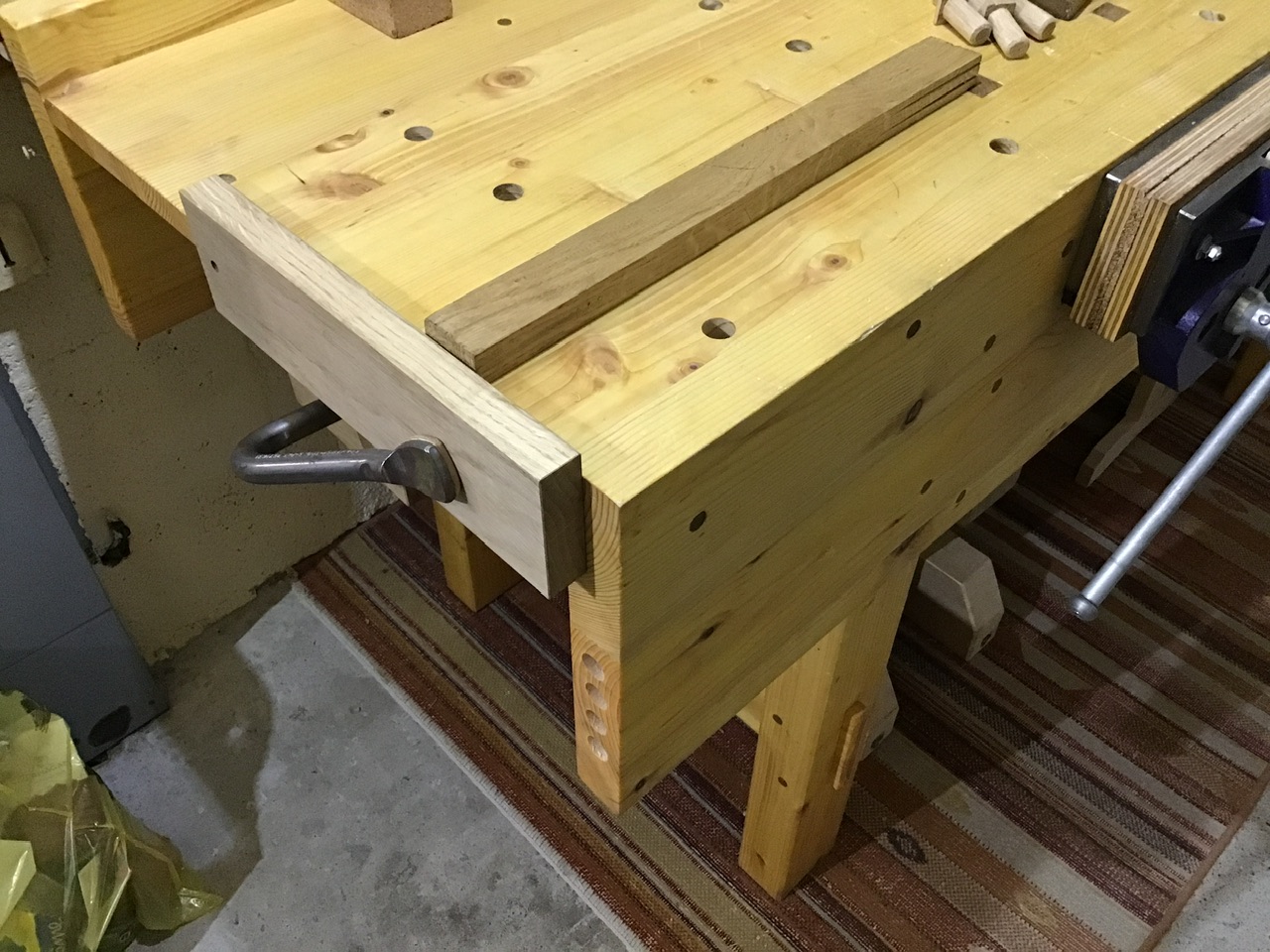 Tout à fait d'accord avec les qualités principales d'un établi que tu cites. les valets sont aussi des moyens de serrage que j'utilise beaucoup.