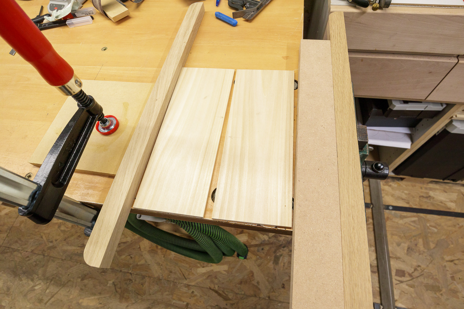 Tout d'abord, j'ai préparé mon morceau de tilleul (5 mm d'épaisseur), en collant 2 morceaux pour pouvoir mettre le fil dans le bon sens :