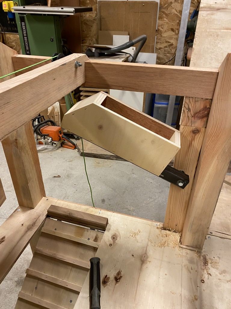 Donc je souhaitais mettre en place un bac sous le perchoir qui sera avec des copeau et retirable facilement depuis l'extérieur pour son nettoyage.