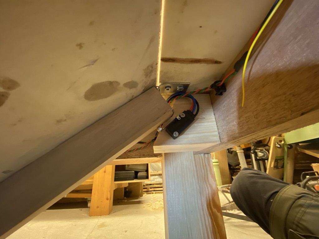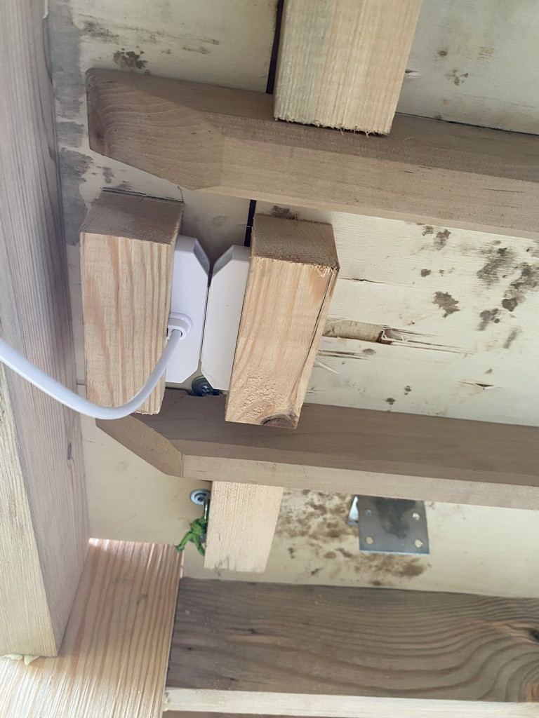 J'ai aussi installé le détecteur de mouvement au niveau de la rampe (en dessous donc) qui activera la nuit des lumière de police US (pour faire peur au renard ...