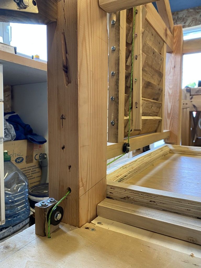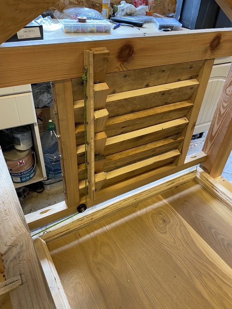 pour ce qui du mécanisme de levée des lattes, dans la V1, je pensais bêtement qu'une ficelle maintenu a l'arrière de chaque lattes suffirait :