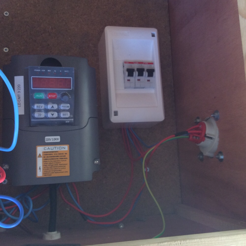 Par contre, l'idéal serait ensuite de mettre les commandes de démarrage sur le tableau pour éviter de débrancher la machine après le variateur.