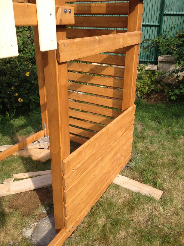 Je pensai plutôt diminuer l'ouverture du passage en remettant un barreau de chaque coté, pour minimiser les risques. Mais maintenant, après les avoir vu l'utiliser je ne suis pas sûr que ce soit utile.