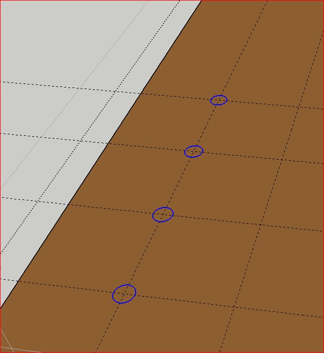 tracer les lignes guides suivant l'espacement que tu veux entre les trous