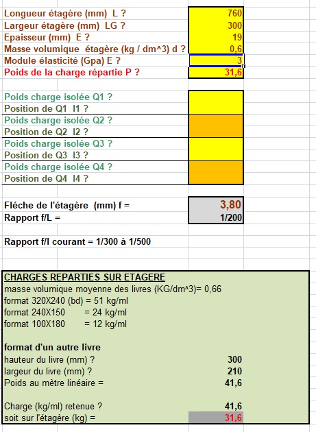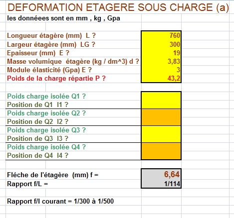 Pour vérifier, mesurez la flèche de votre étagère et à partir de tous ces éléments pour pourrez définir le module d'élasticité du