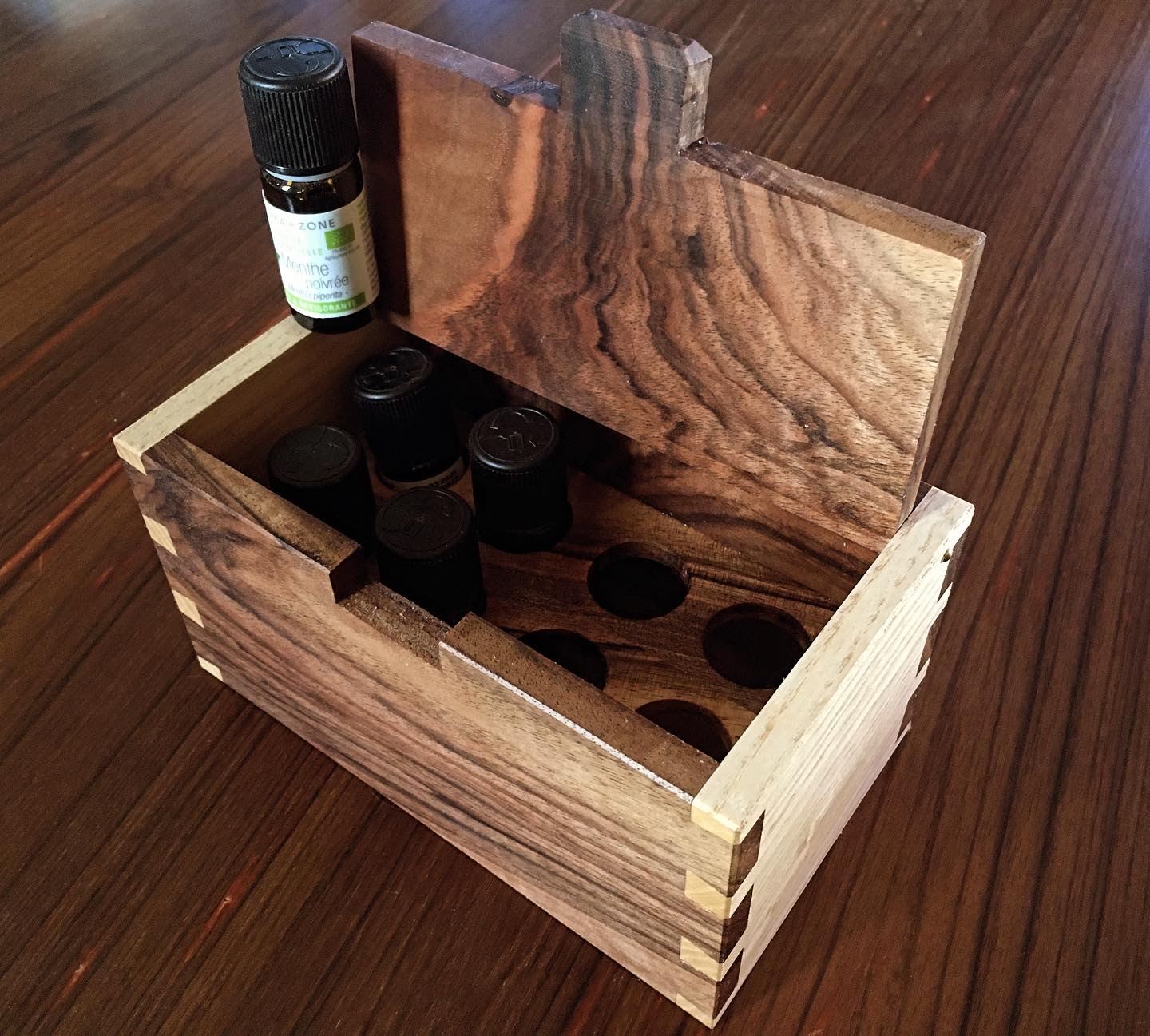 Ma chérie m'a offert un abonnement à Bois+ à noël, donc j'ai fait une des réalisations qui étaient dans le hors série que j'ai reçu : la boîte à huiles essentielles, un peu adaptée à ma sauce