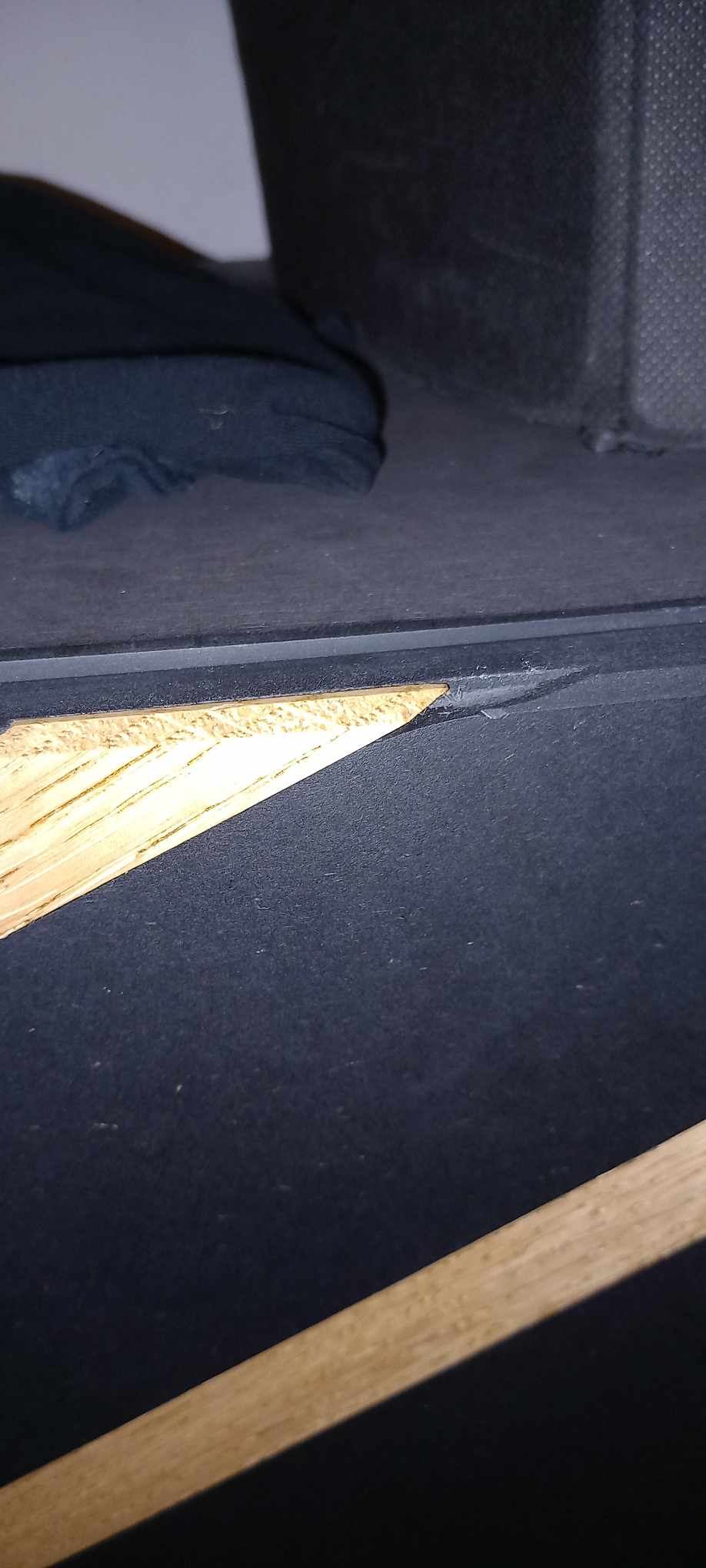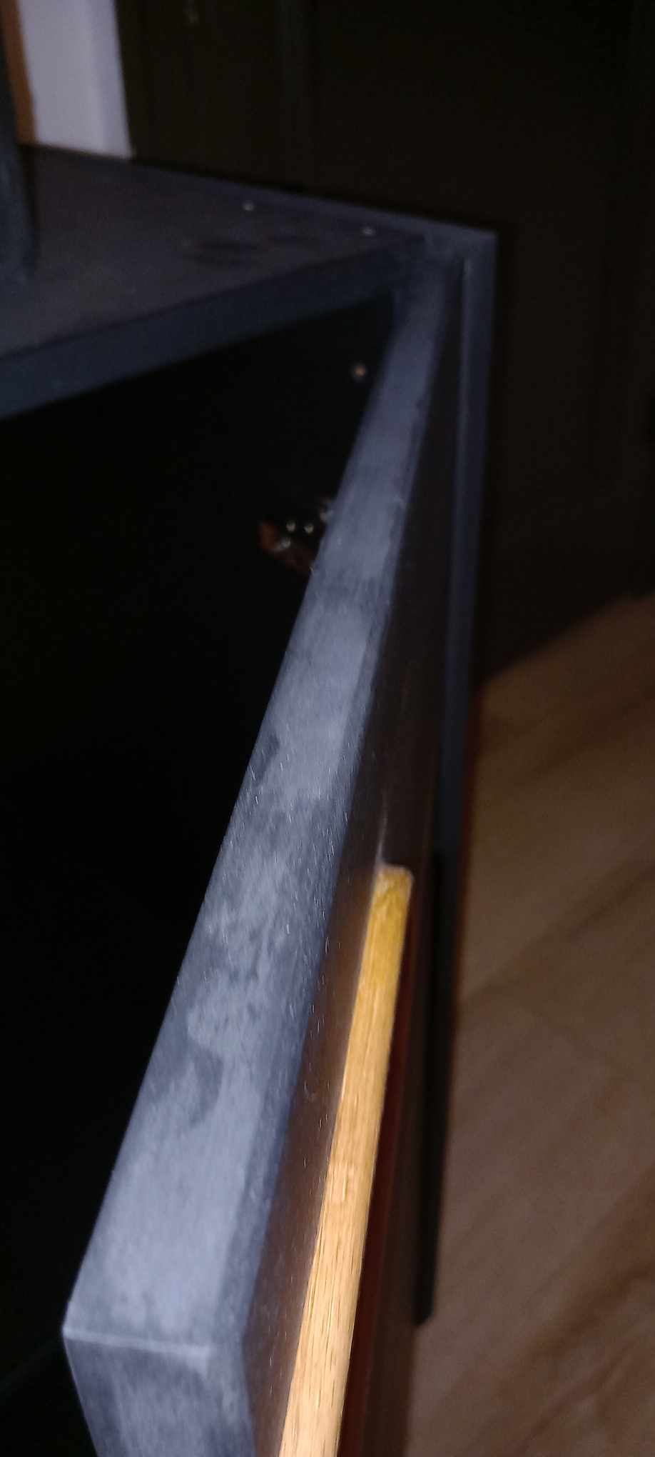 la finition des chants c'est typique du médium, pores non bouchées correctement , porosité donc c'est mat.
