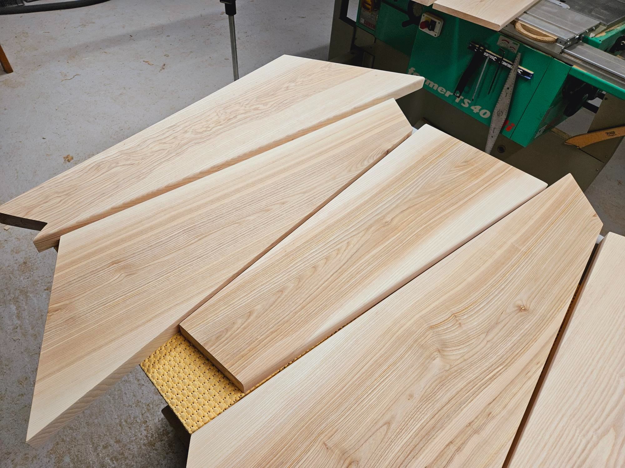 Alors pas tout à fait, seule la première et la quatrième en partant de la gauche des marches droites le sont. Tout le reste à été refendu et recollé vu la déformation qu'avaient déjà subit les plateaux. En revanche je n'ai pas vraiment respecté les règles de l'art et j'ai recollé les planches en les laissant dans leur position d'origine, d'où l'impression qu'elles n'ont pas été refendu. J'espère que ça n'entraînera pas trop de déformations pour autant.. disons que c'est un essai, j'ai pris le risque