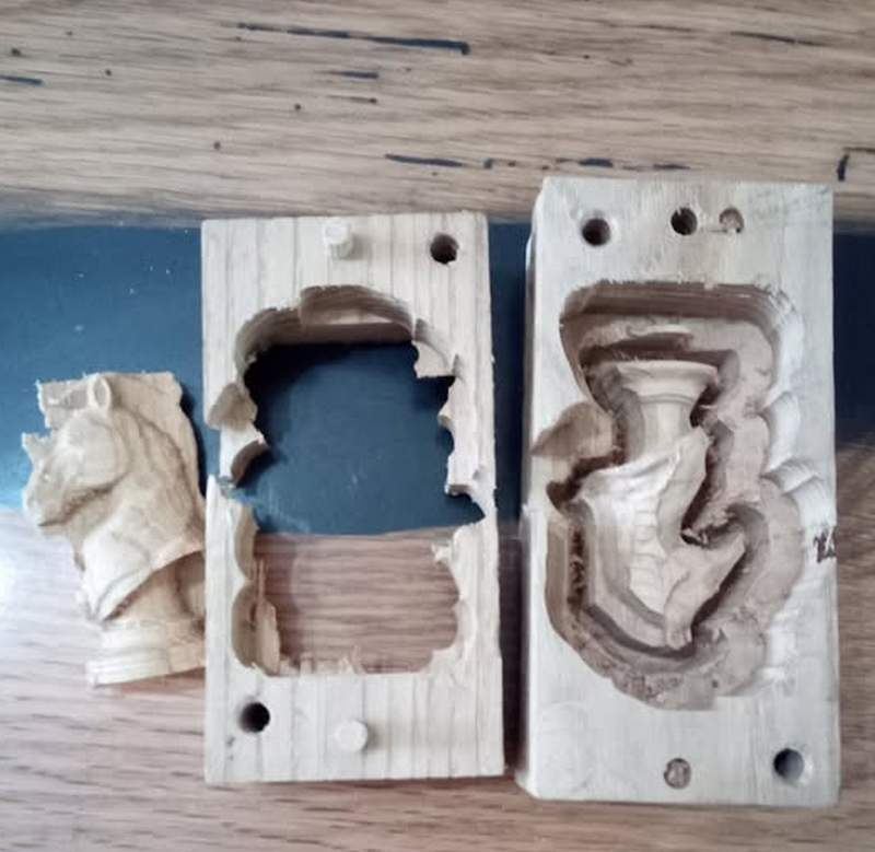 Je ne comprends pas comment tu arrives à avoir des formes avec des surplombs avec une CNC 3 axes. Les pièces sont aussi constituées de deux parties?