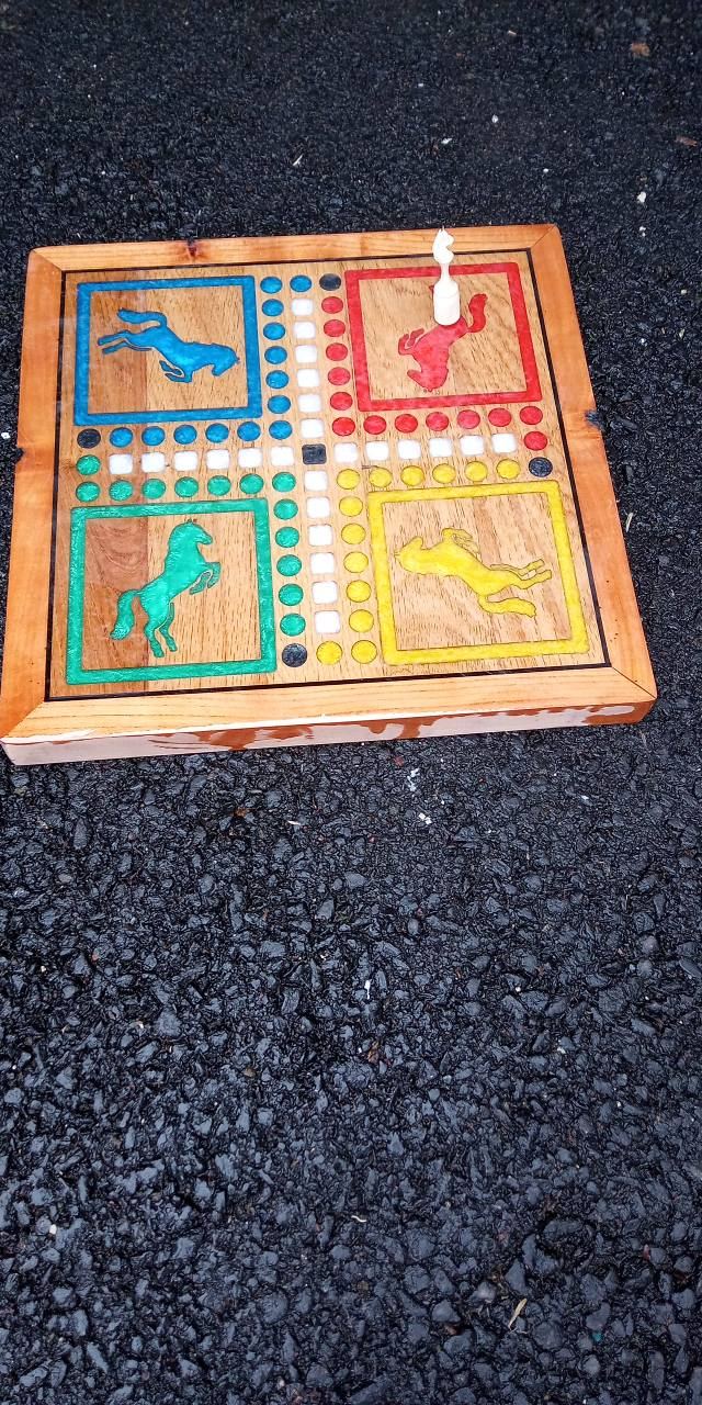 j'avance un jeu de petit chevaux avec un plateau issu d'une vieille poutre de merisier ...