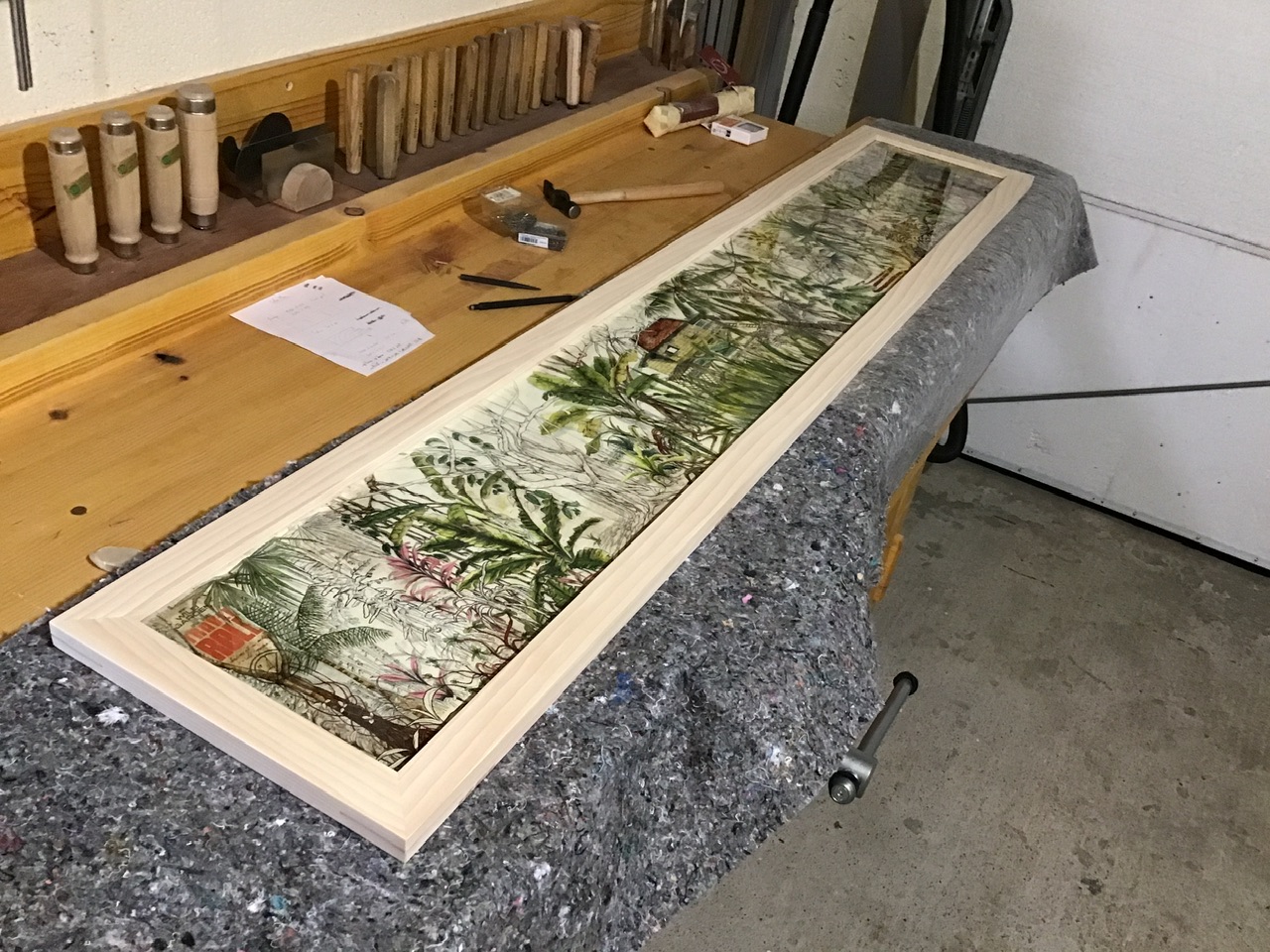 C’était pour une « toile » qu’il a ramené d’un voyage en Thaïlande. Un encadreur lui a fait un devis a plus de 200 euros et comme je pouvais le faire plus ou moins gratuit… (soit dit en passant je trouve ça loin d’être délirant comme prix pour un cadre sur mesure).