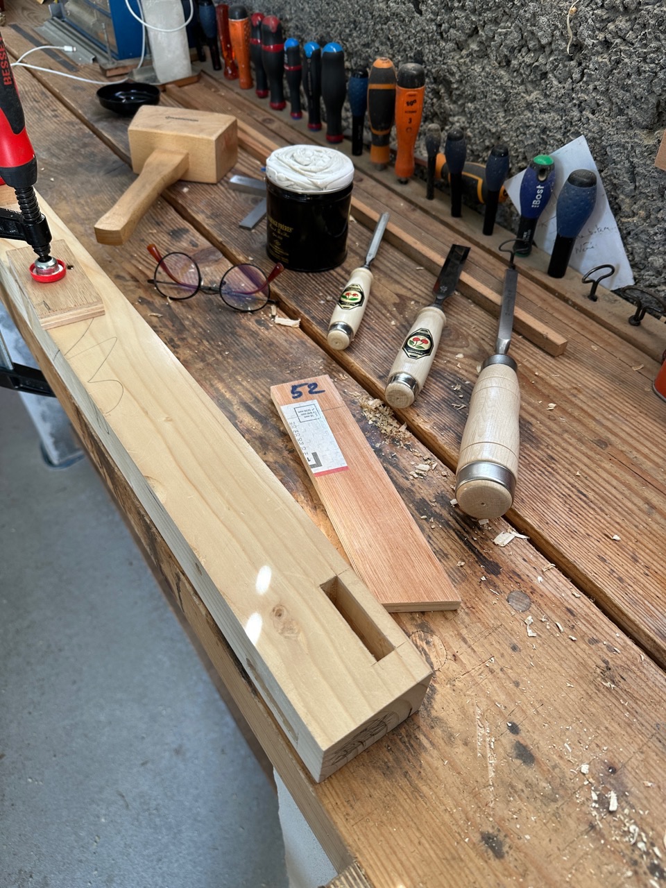 Ensuite j’avais le choix. Soit j’arrondissais les tenons soit j’équarrissais les mortaises. J’ai choisis la 2ème solution.