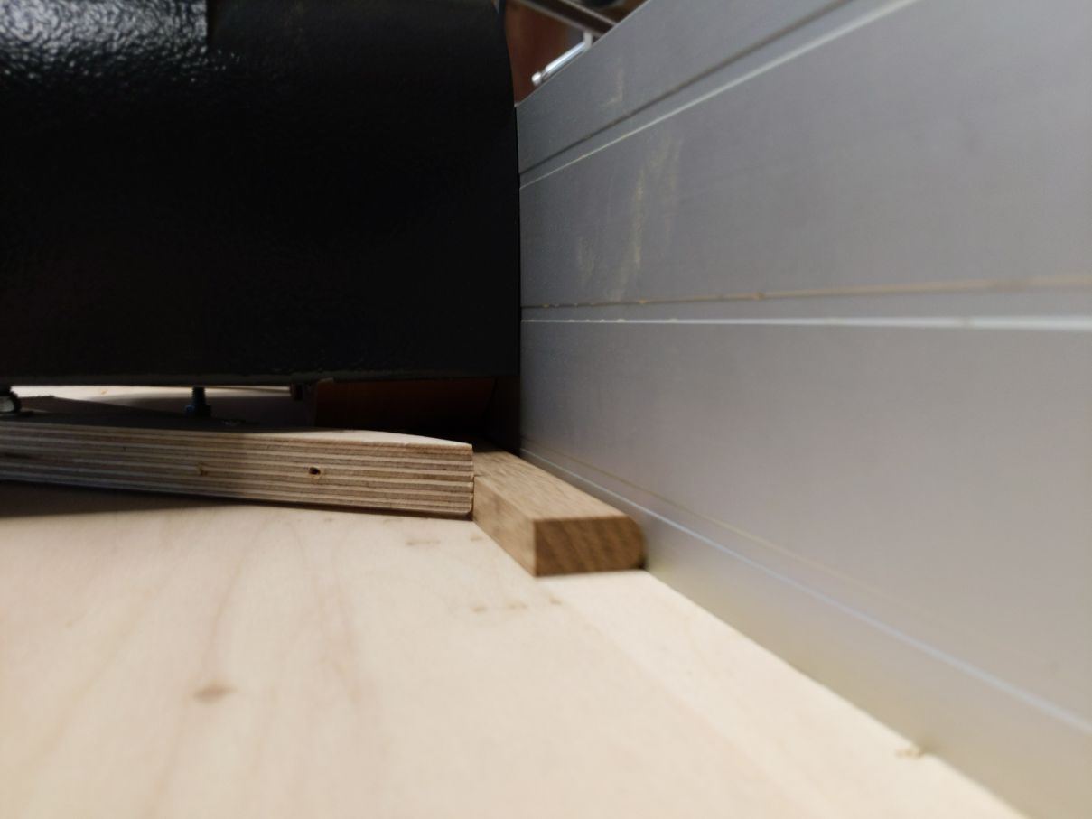 J'ai fait un petit gabarit de toupie avec deux chutes montées sur ressort pour plaquer les morceaux de bois en entrée de toupie et pouvoir la "nourrir" en continu!