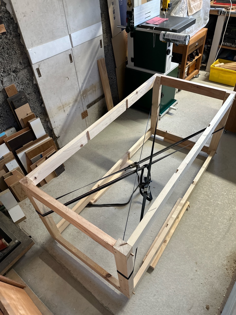 Comme je n’ai pas de serre-joints assez grands, j’ai opté pour un chevillage à tire.