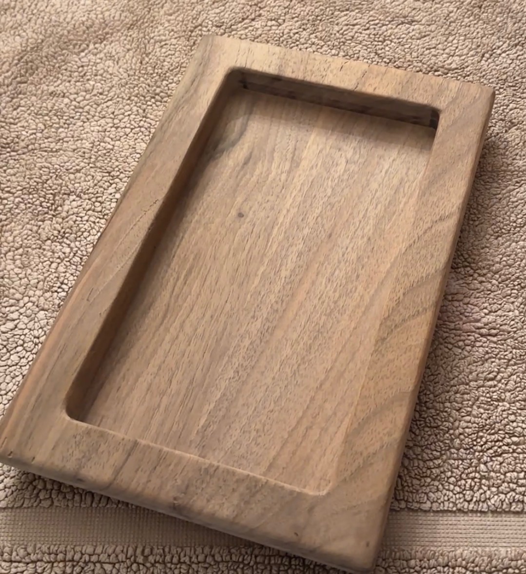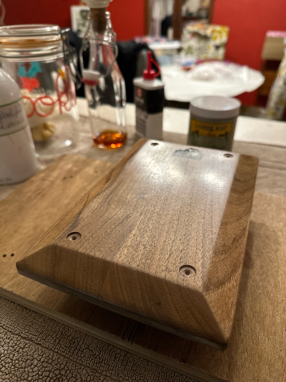 Je voulais pas prendre de risque alors j’ai commencé par le dessous de ce vide poche en noyer.
