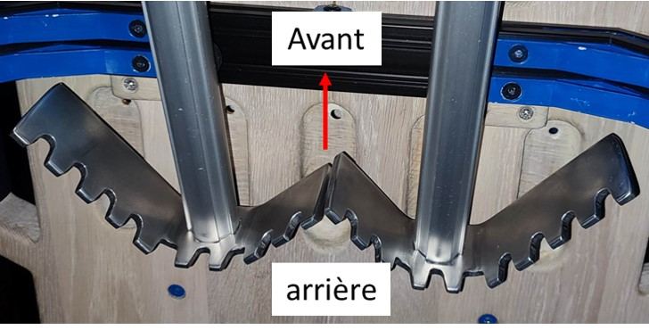 Remplacement des griffes par de plus grosses et un profil en V: (anciennes en haut, nouvelles en bas)