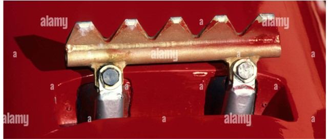 @ Philippe, bonne idée le modèle Bobsleigh. J'ai trouvé ces images: Cela valide le maintien des dents. Pas besoin qu'elles soient complétement pointues, mais elle ont plusieurs biseaux. Elles sont bien perpendiculaires au sens de déplacement . J'imagine que pour les actionner, il y a un piston pour les faire sortir avec de la force.