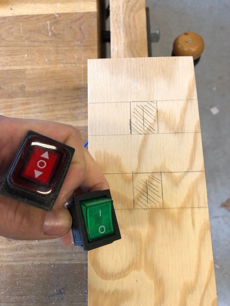 J'ai également passé un câble jusqu’à la partie de la défonceuse sous table. a cet endroit je vair y disposer un systeme basculant avec interrupteur électromagnétique ON/OFF et une prise asservie a ce dernier sur laquelle se branchera la défonceuse