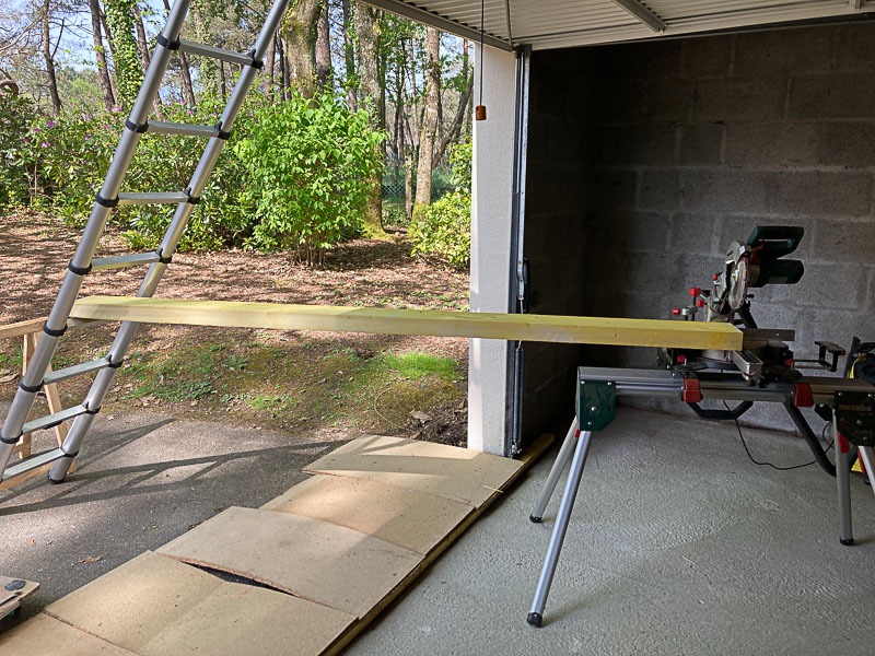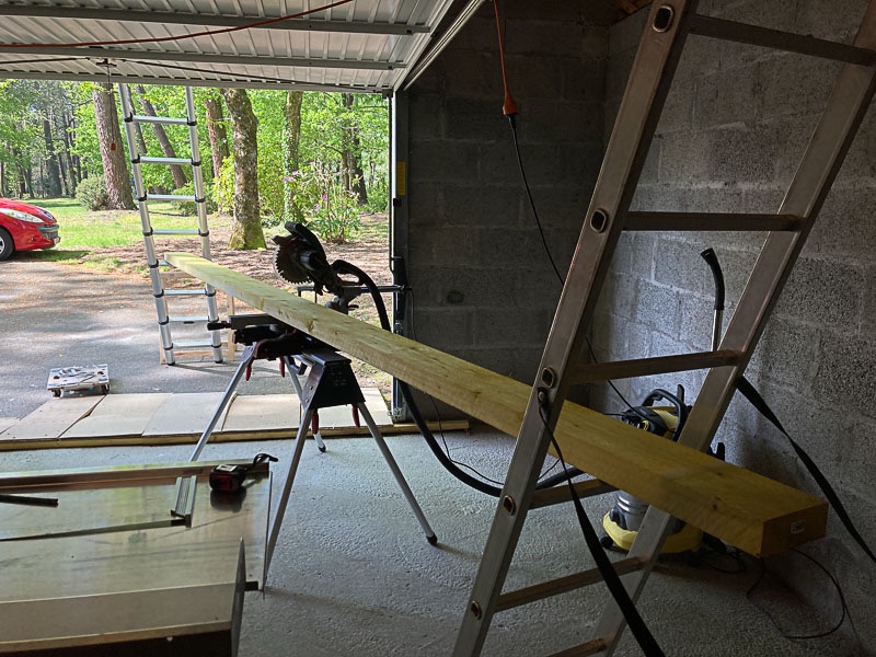Bon ben ça fait juste une dizaine de mL de morceaux inutilisable et ça ne va pas m'arranger pour le reste de l'ossature, notamment pour le création de la paroi séparative. Allez, c'est fait, on verra plus tard et j'ai de la marge et quelques bastaings en réserve que je pourrai toujours utiliser pour réparer ma connerie.